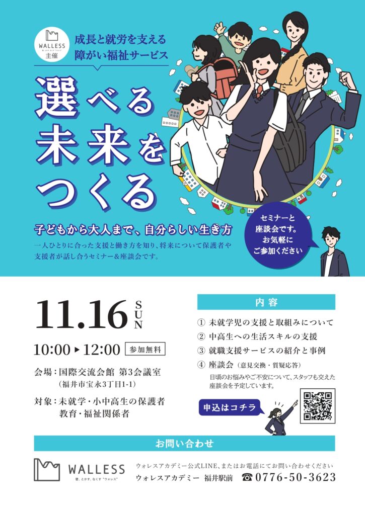 お問い合わせ窓口は『ウォレスアカデミー 福井駅前』となっておりますので、よろしくお願いいたします。
