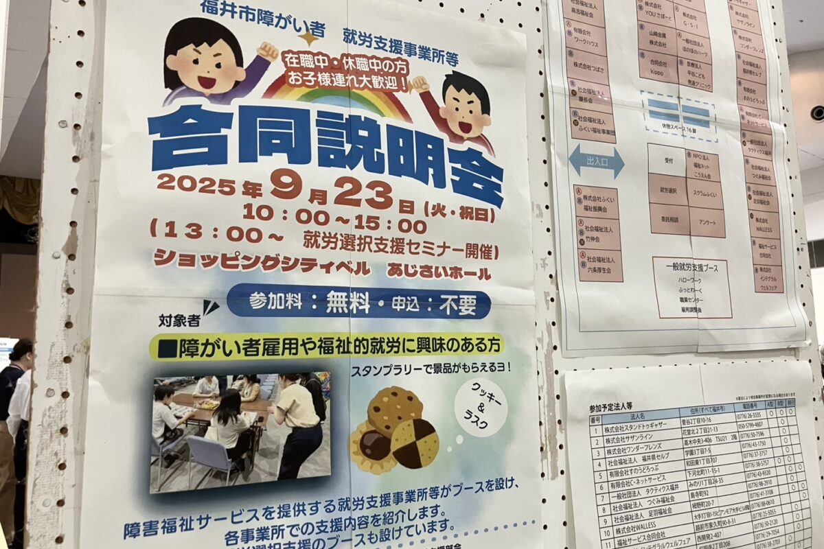 ショッピングシティ ベル(あじさいホール)にて開催された、『福井市障がい者 就労支援事業所等 合同説明会』にジョブトレも参加してきました!